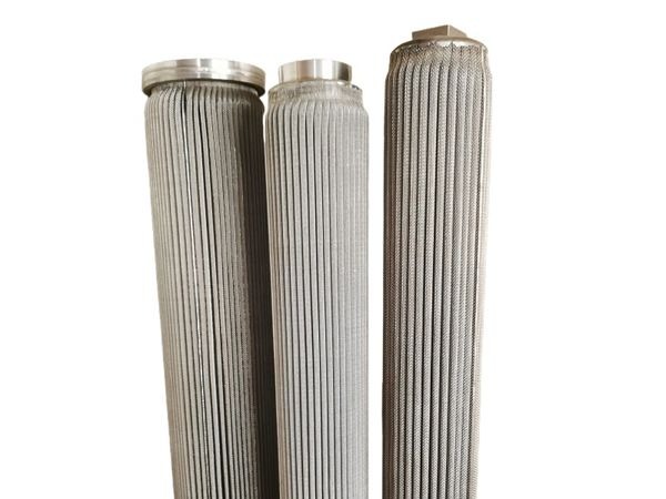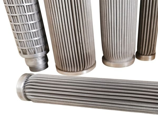 Stainless steel pleated filters elements are mainly made of 304 or 316L stainless steel, it is durable in structure and offer large dirty holding capacity with a minimal pressure drop. These filter cartridges are typically pleated or cylindrical (wrapped), with a lightweight core and a support ring. Industrial process cartridges overcome the temperature and compatibility limitations of cellulose or synthetic fiber cartridges by being manufactured of stainless steel using crimping and welding, with no brazing or epoxy bonding used.